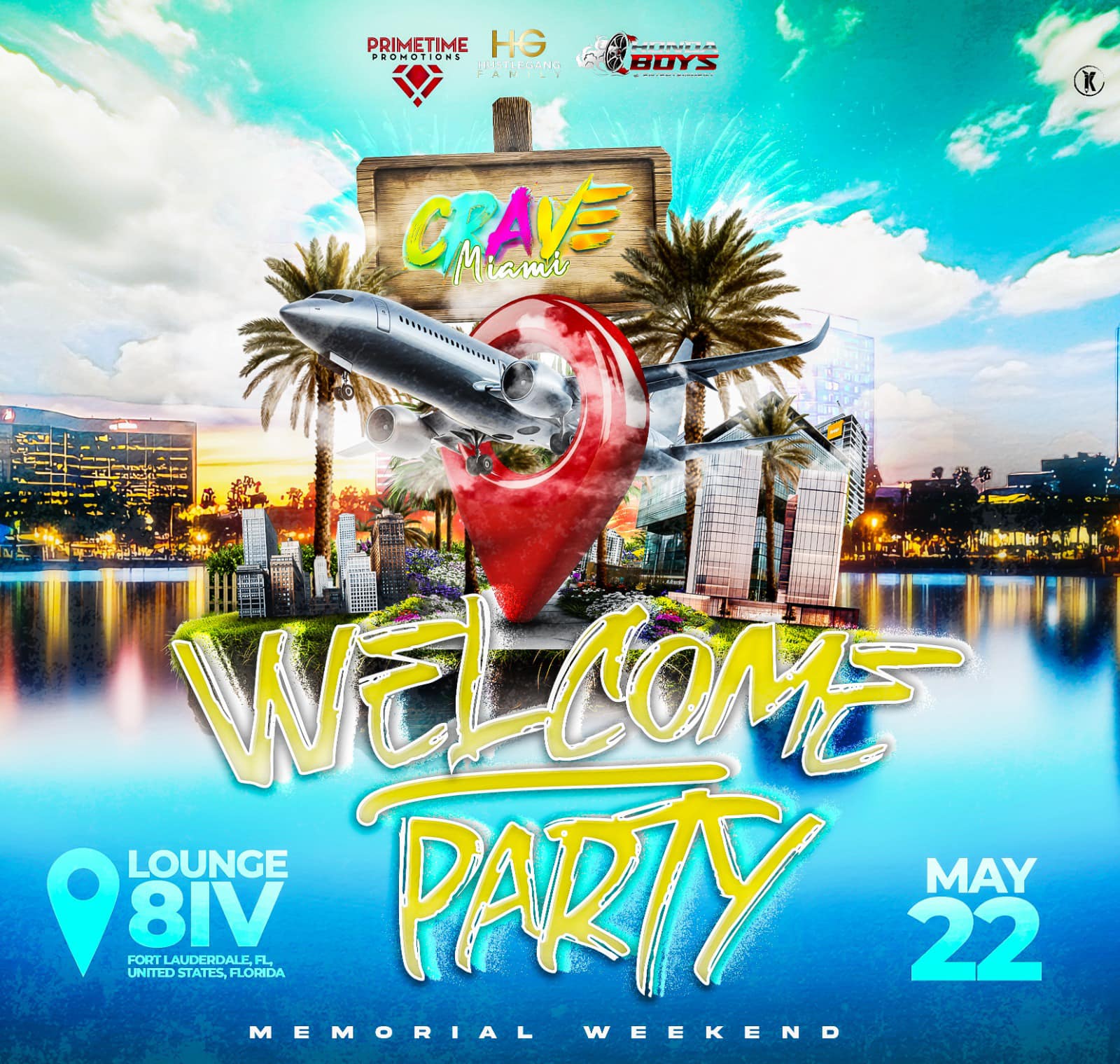 PACK YOUR BAGS WELCOME TO MEMORIAL WEEKEND PRIMETIME PROMOTIONS X HONDA BOYZ X HUSTLE GANG PRESENTS CRAVE MIAMI THE OFFICIAL WELCOME PARTY THURSDAY MAY 22ND LOUNGE 8IV (FORT LAUDERDALE FL) MORE INFO COMING SOON….